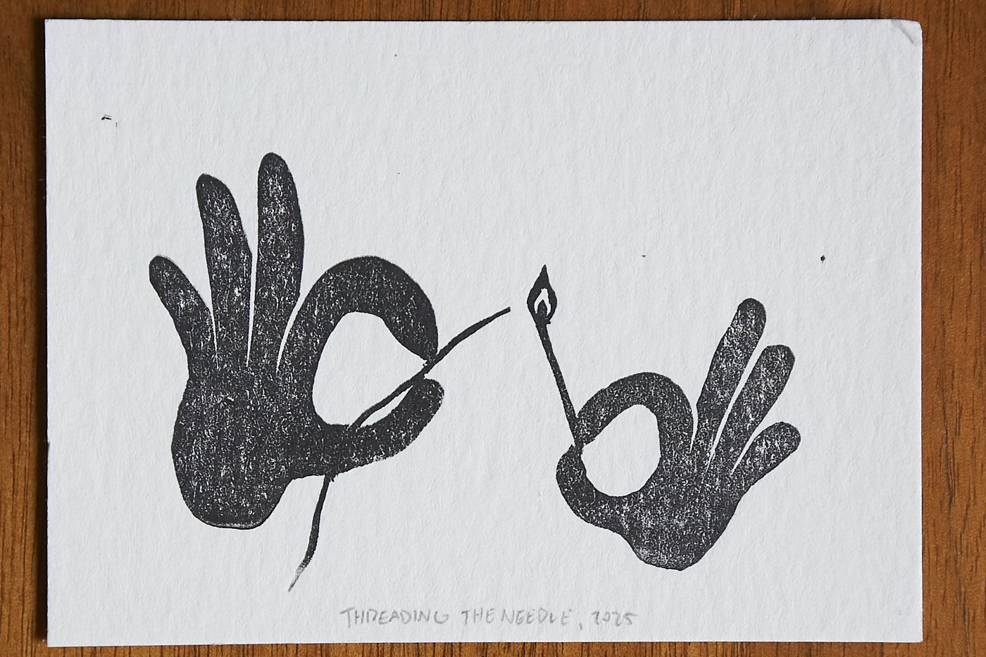 At this point, I’d begun to host regular art making afternoons with a different friend of mine, and I needed something to work on, so I quickly threw this together. My wife, who does sew, mocked me for seemingly never having threaded a needle in my life, and having no idea how hands curled when doing it properly. The matchstick emerged naturally at some point, perhaps before, perhaps after, those conversations. When selling this later, everyone assumed the match stick was a sewing needle.